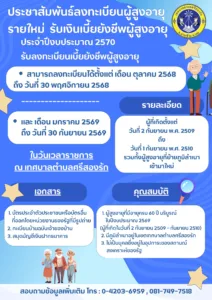 ประชาสัมพันธ์ การลงทะเบียนรับเงินเบี้ยยังชีพผู้สูงอายุ ประจำปีงบประมาณ 2570
